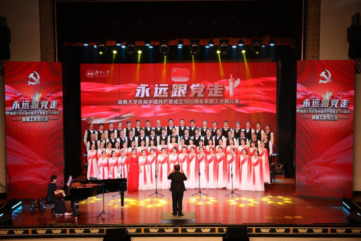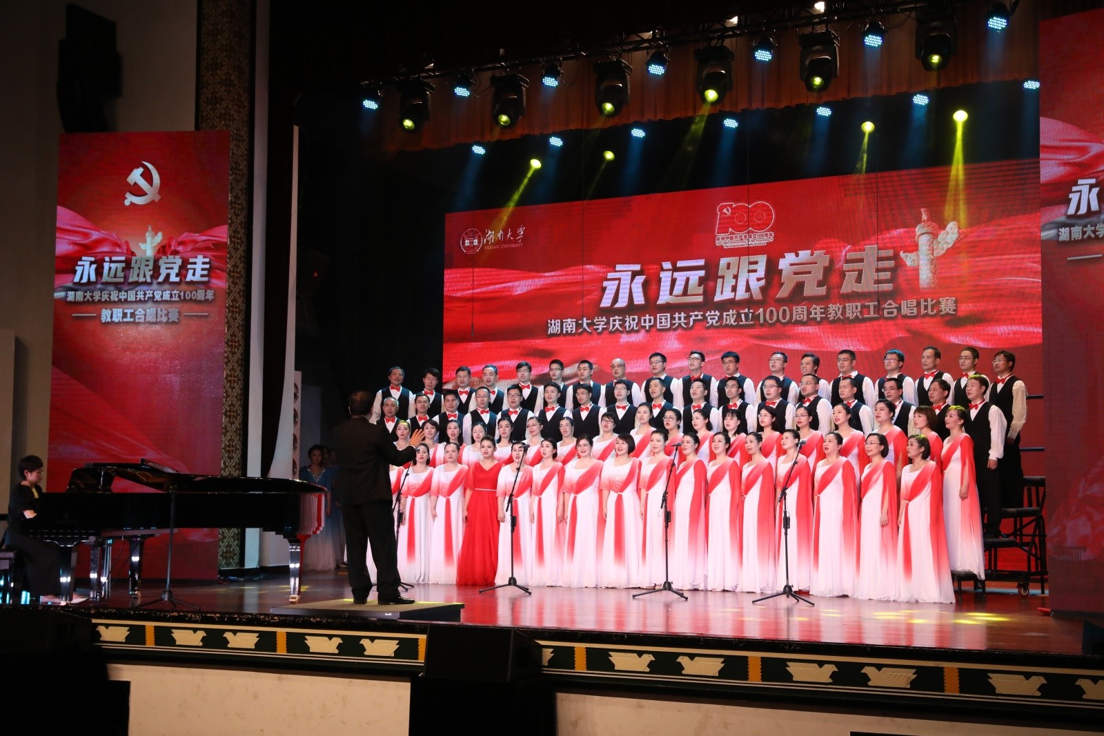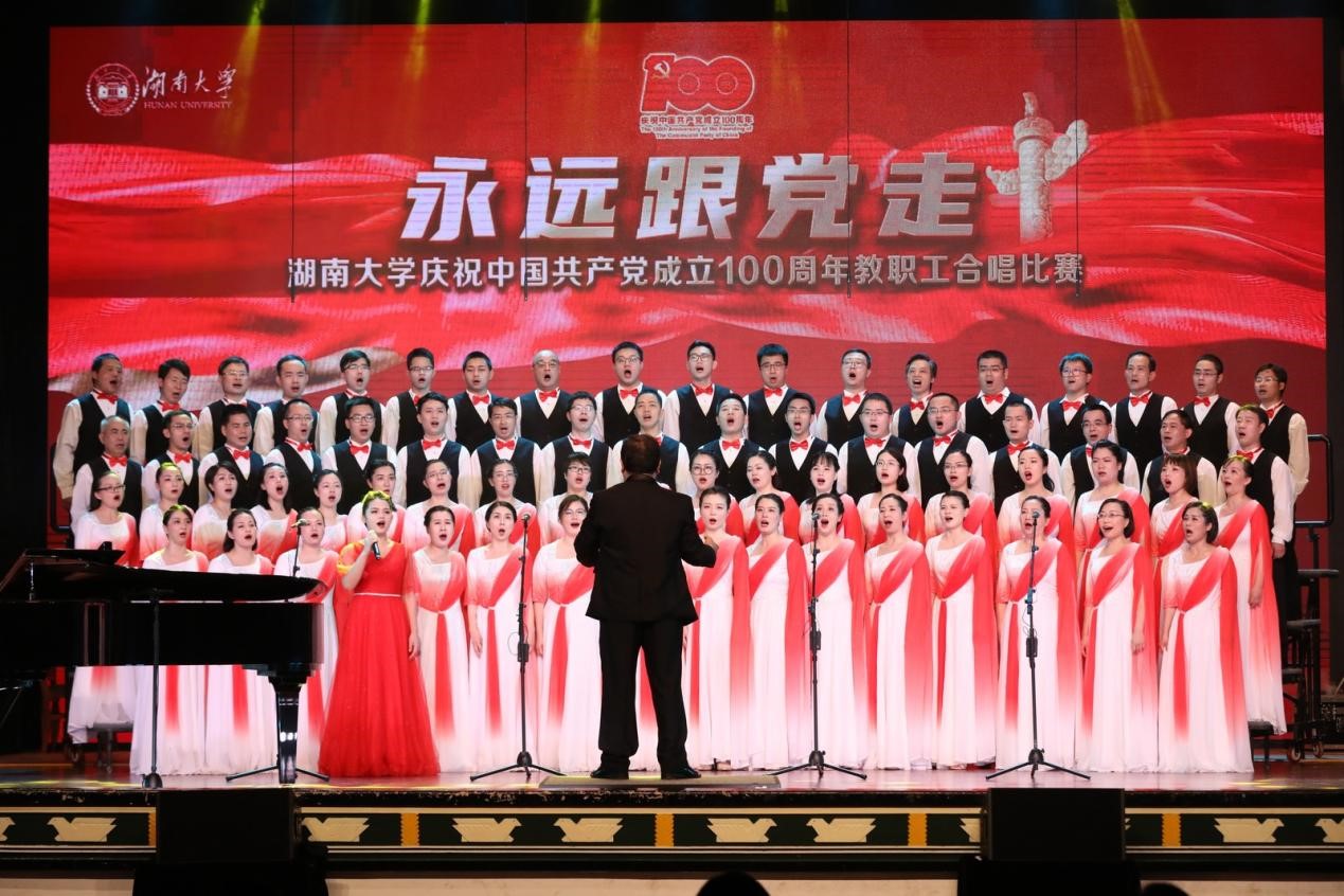 喜迎七一,歌声激昂,2021年6月22日,湖南大学“庆祝中国共产党成立100周年教职工合唱比赛”在大礼堂拉开帷幕,34个二级部门工会、以及湖南大学老教师、子弟小学、科级干部培训班和长沙校友等4个参演合唱团同台献艺。最终,老虎机