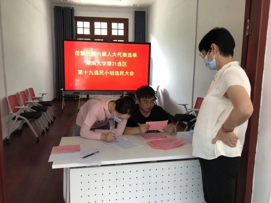 2021年8月21日,长沙市岳麓区迎来了区人大代表换届选举“湖南大学(21选区)”投票选举日。为支持选区工作,保障选举工作顺利完成,我院选派38名学子作为志愿者协助湖南大学(21选区)的各选民小组开展人大代表换届选举工作。