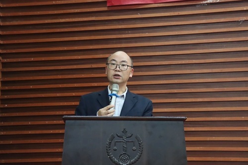 曹晓军老师代表湖南大学第二十二届团委委员向大会做题为《挺膺担当建新功,砥砺奋进向未来,团结带领全院团员青年踔厉奋发、勇毅前行,努力成长为堪当民族复兴重任的时代新人》的工作报告。报告回顾了二十二届团委在夯实团员信念,厚植实践根基,讲好学院故事,畅通信息渠道等方面取得的成绩与经验,同时认识到共青团工作任重道远,院团干部的能力素质和工作状态仍需提升。接着,他对接下来一年的工作进行了规划和展望,明确未来将聚焦组织建设规范化、实践品牌特色化、宣传内容精品化,持续推进“三会两制一课”落地,深化“岳麓法青”实践品牌,提升宣传矩阵影响力,以“敢担当、善作为”的作风,团结团员青年成长为堪当民族复兴重任的时代新人。