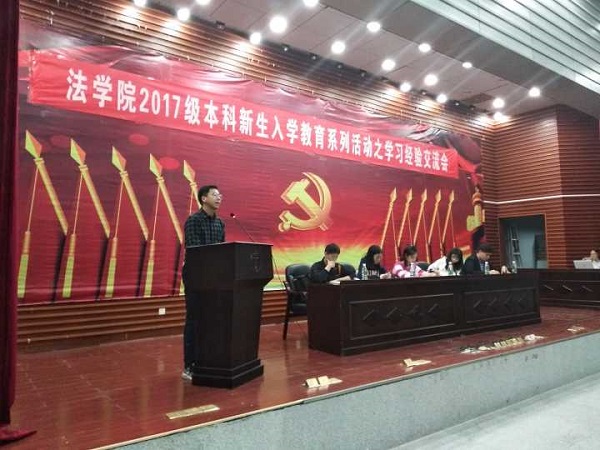 “英语是大学学习的重中之重,是一门需要很长时间积累的学科,当然没有兴趣也是进行不下去的,所以要时刻保持语感。”屡获国奖的王骁同学特别强调了英语学习的重要性,他提醒同学们从大一开始要忌浮躁,不懈怠,平时多读、多看、多练,他还鼓励同学们积极参加英语四、六级考试,雅思、托福等考试,为以后专业课的学习和出国留学打下基础。来自2015级法学一班的查华清同学结合自身学习感悟讲解了法律逻辑学等科目的学习方法,她认为除了复习、备考要做到有的放矢,分清主次,课堂上也要力求认真。“抓住课堂,你就成功了一半”,来自2016级法学四班的刘芷菲同学同样强调了课堂的重要性,同时她还建议新生结合案例多做实例分析,多阅读课外书拓展视野提升专业素养。