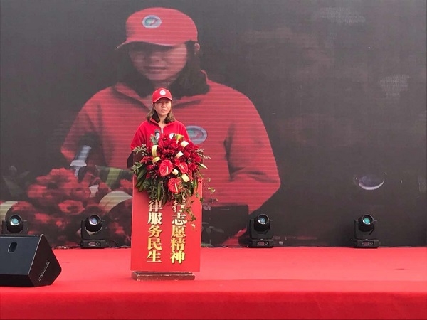 还组织60余名志愿者前往长沙市岳麓区王府井商业广场参加了2016年湖南省“法润三湘”公共法律服务志愿者活动,我院本科生张迎作为志愿者代表在活动启动仪式现场发言。