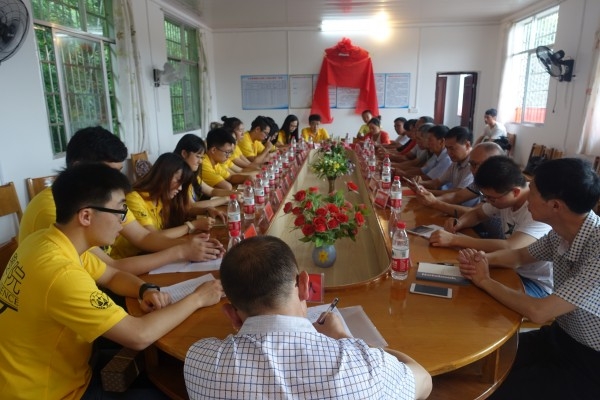 开展“三下乡”工作。胡主席希望实践团成员在星火村多走走,多看看,认真开展调研工作,真实了解基层情况,同时充分利用炎陵丰富的文化资源,学习炎帝文化,传承炎帝精神。星火村唐莳平书记向同学们介绍了星火村概况,以及当地加强政治建设、经济建设、文化建设、社会建设和生态文明建设的举措和成效,并重点介绍了基层党组织的建设情况。胡主席和唐书记的介绍使同学们对炎陵县、鹿原镇和星火村有了基本的了解,为今后开展普法宣传、精准扶贫调研等工作奠定了基础。