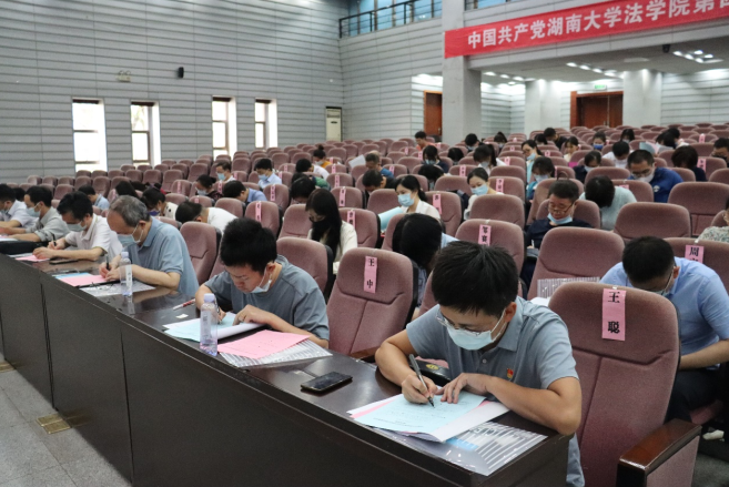 第四次代表大会在法学楼报告厅隆重举行,湖南大学党委副书记、纪委书记曹升元、组织部副部长钟叶娇莅临大会指导,全院76名师生党员代表出席会议。